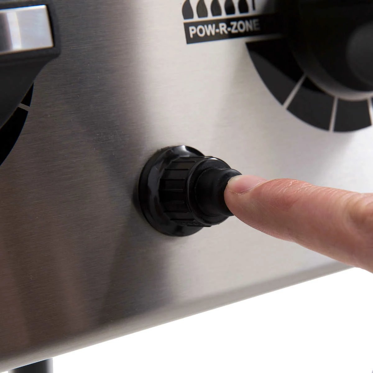 Mit der Sure Lite Piezo-Zündung werden die Brenner über zwei wasserdicht ummantelte Zündboxen am Brenner gezündet. So kann der Gasgrill jeder Zeit sicher und bequem gezündet werden.