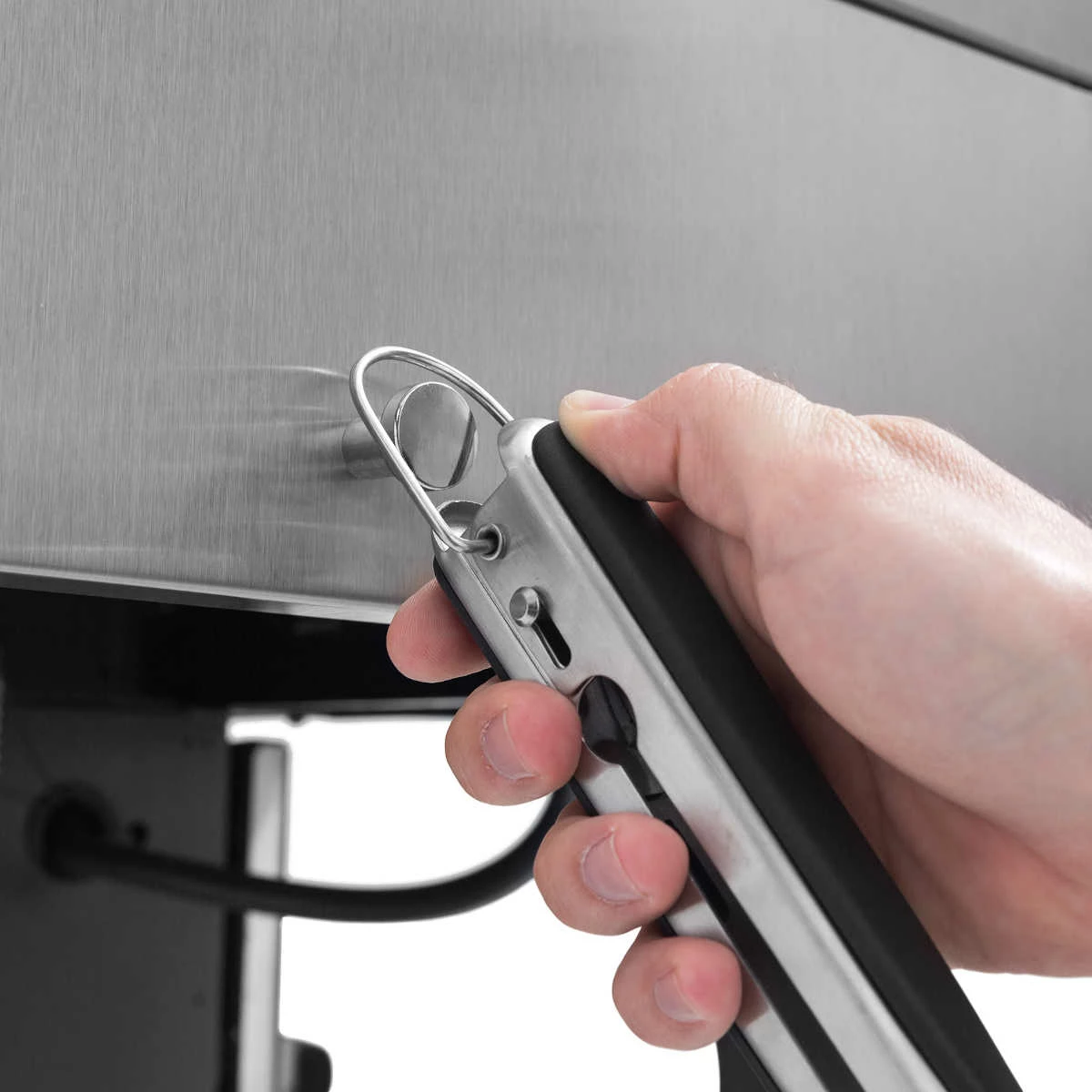 Die hochwertige Verarbeitung zeigt sich zum einen durch den Doppelwandigen Edelstahl-Deckel mit Seitenteilen, die aus Aluminiumguss gefertigt sind. Zum anderen zeigt sich die Qualität durch den Unterwagen, der mit zwei Türen und zwei Schubladen zusätzlichen Platz bietet, um Zubehör zu verstauen. Die Edelstahl Seitenablagen auf der rechten Seite verfügen über praktische Fontablagen und Zubehörhaken, sodass jederzeit für Ordnung