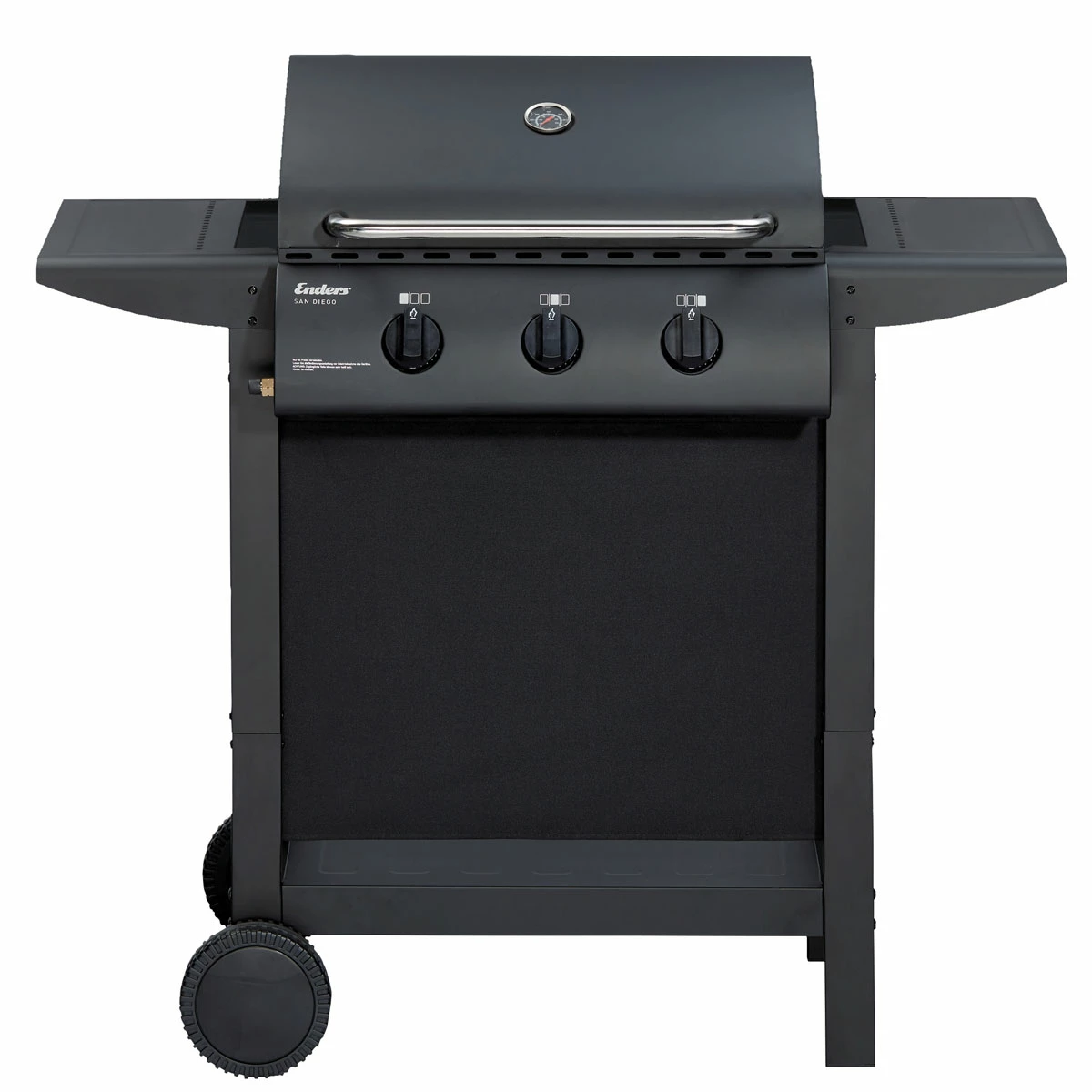 Der kompakte San Diego 3 Gasgrill von Enders ist mit bestens gerüstet für kräftig gegrillte Spezialitäten, macht aber auch beim indirekten Grillen eine tolle Figur. Unter der ist Platz für abwechslungsreiche BBQ-Ideen und ganze Grillmenüs, der mitschwingende Warmhalterost bietet zusätzliche Grillfläche zum Warmhalten und Nachgaren.