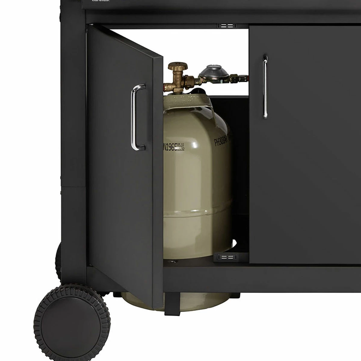 Auch für Stauraum ist gesorgt: Auf den beiden ist Platz für Grillzange und Gewürze, im verschwinden hinter den beiden Türen 5kg-Gasflasche, Abdeckhaube und Co. Dabei lässt Euch das solide Leichtgewicht genügend Platz für gemütliche Grillsessions – und sollte es doch mal eng werden, ist der San Diego 4 mit seinen robusten fix weggeräumt.