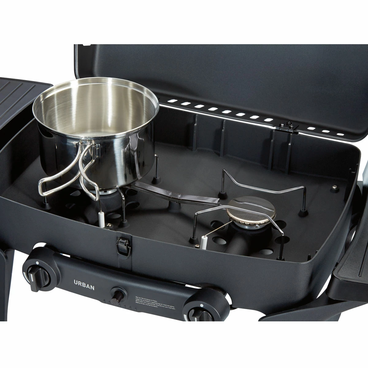 Der Urban Gasgrill ist mit seiner kompakten Größe Eure perfekte Grillstelle für Campingplatz und Stadtpark, macht aber auch mit seinem Untergestell auf dem Stadtbalkon eine tolle Figur. Flexibel ist der kleine Gasgrill allemal: Ob Ihr ihn mit Schraubkartusche oder 11kg-Gasflasche betreibt – er passt sich problemlos Euren Bedürfnissen an.