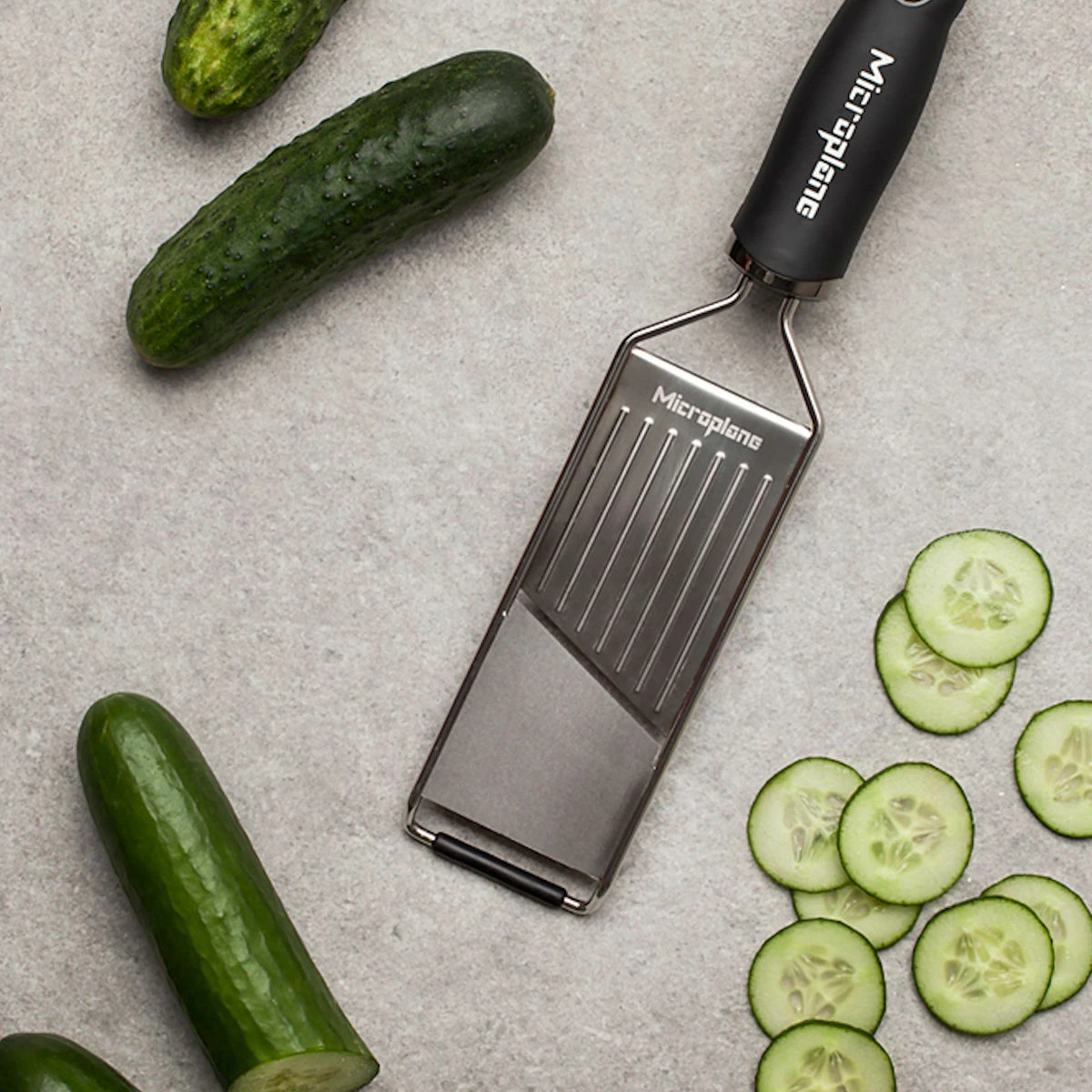 Der Profi-Gemüsehobel von Microplane ist für verschiedene Lebensmittel geeignet, darunter: Kartoffeln, Möhren, Gurken, Zucchini, Rote Bete und viele weitere.