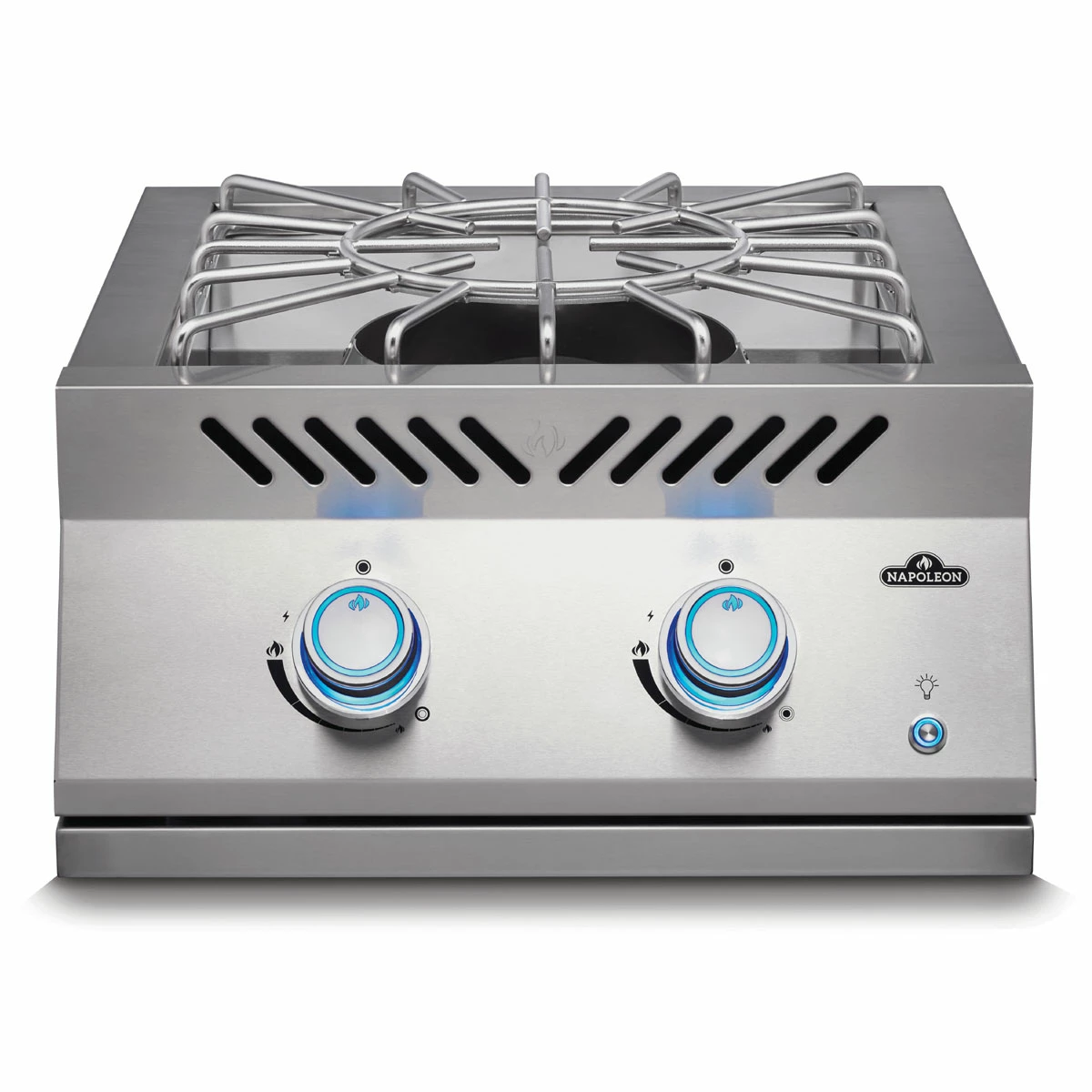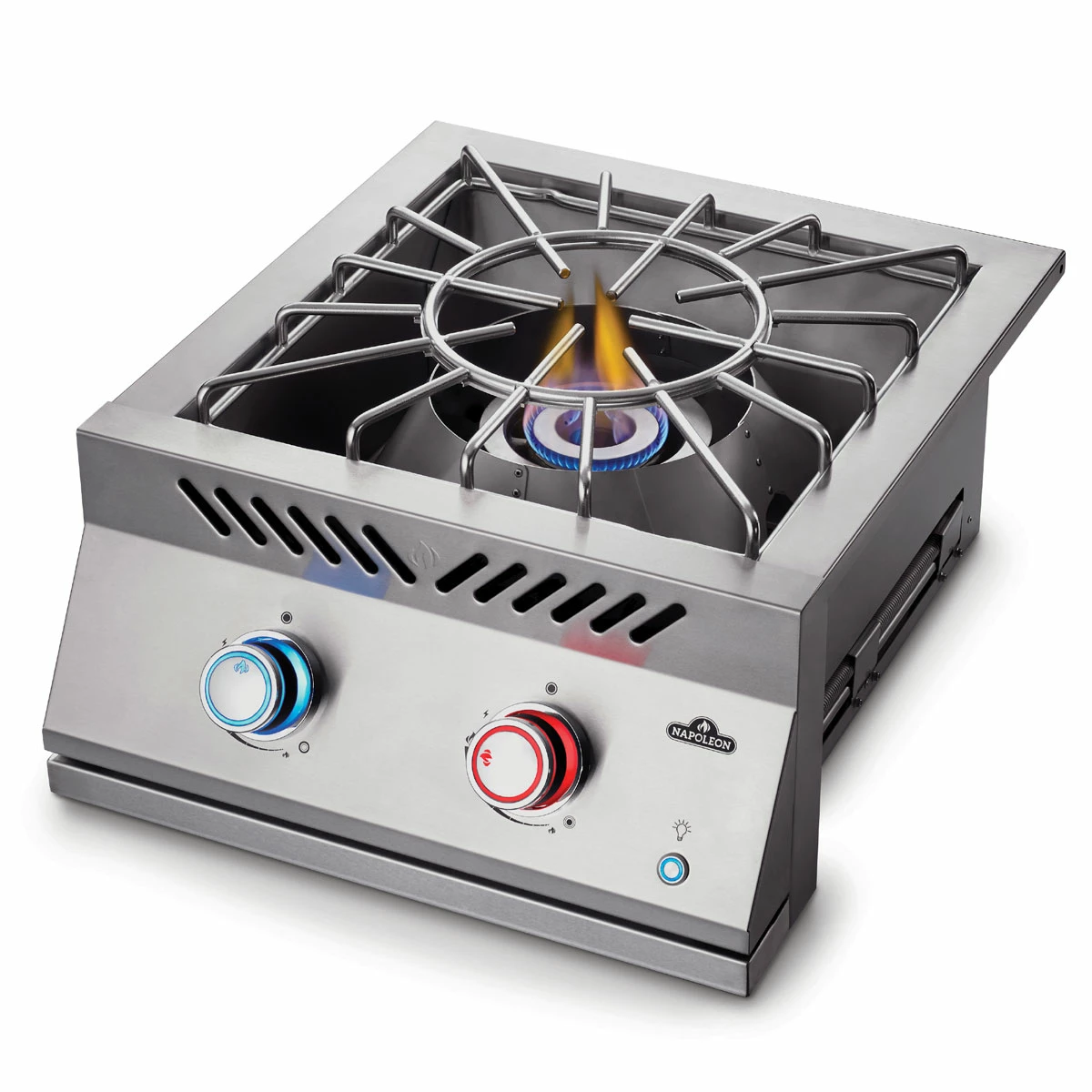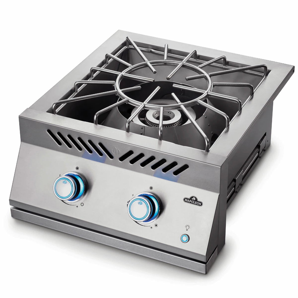 - Der Power-Wokbrenner darf nur in ausreichend hitzefestem und nicht brennbarem Material verbaut werden. Mit einer maßgenau passenden Napoleon Einbau-Einfassung ist dagegen auch der Einbau in hitzeempfindlichen Baustoffen möglich. Diese ist optional erhältlich.