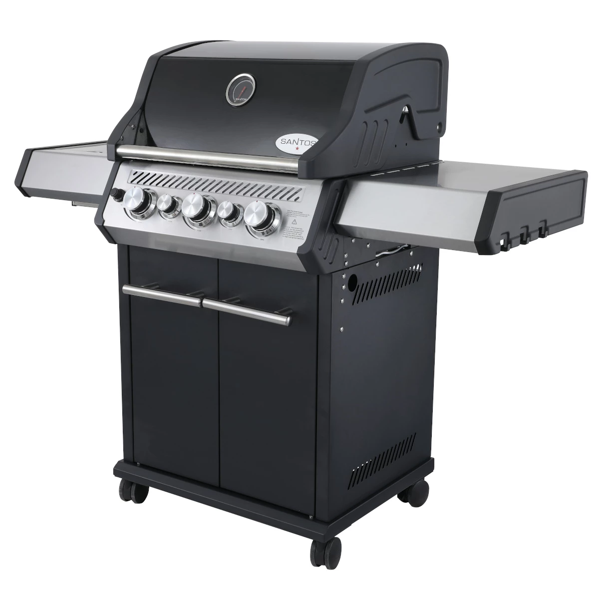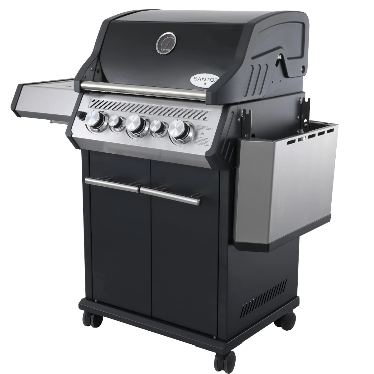 Der SANTOS S-318 Gasgrill in schwarz ist ein richtiges , auf das jeder Grillfan gewartet hat. Mit dem S-318 seid Ihr bestens für die Grillabende der nächsten Jahre ausgestattet. Neben der Hauptgrillfläche, hat der Gasgrill einen und . Die zusätzlichen Brenner sorgen für Power und Möglichkeiten, mit denen das Grillen einfach Spaß macht. Mit einer frischen Gasflasche gewappnet, stellt sich Euer Grillgerät jeder hungrigen Meute entgegen.