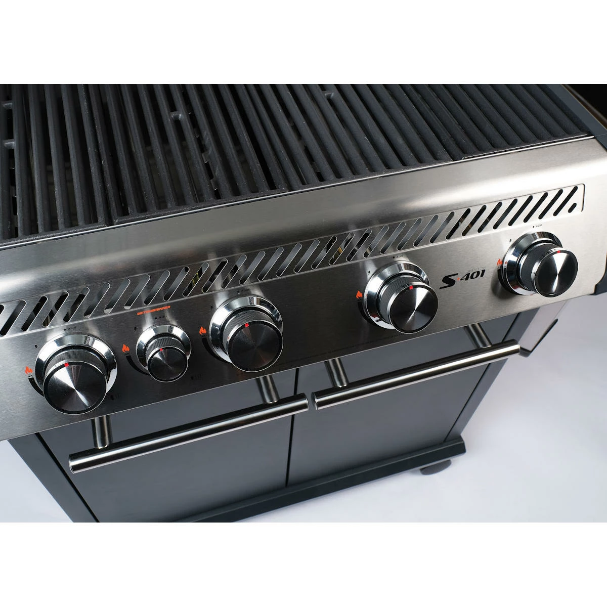In der linken Ablage des Grills ist ein Seitenkocher integriert. Der Seitenkocher hat ein Kochfeld, auf dem Ihr mühelos Beilagen zubereiten könnt. Den oder die Grillpfanne heizt Ihr mit satten 4 kW ein. Damit wird aus dem S 401 eine kleine Außenküche, mit der sich umfangreiche Menüs grillen und kochen lassen.