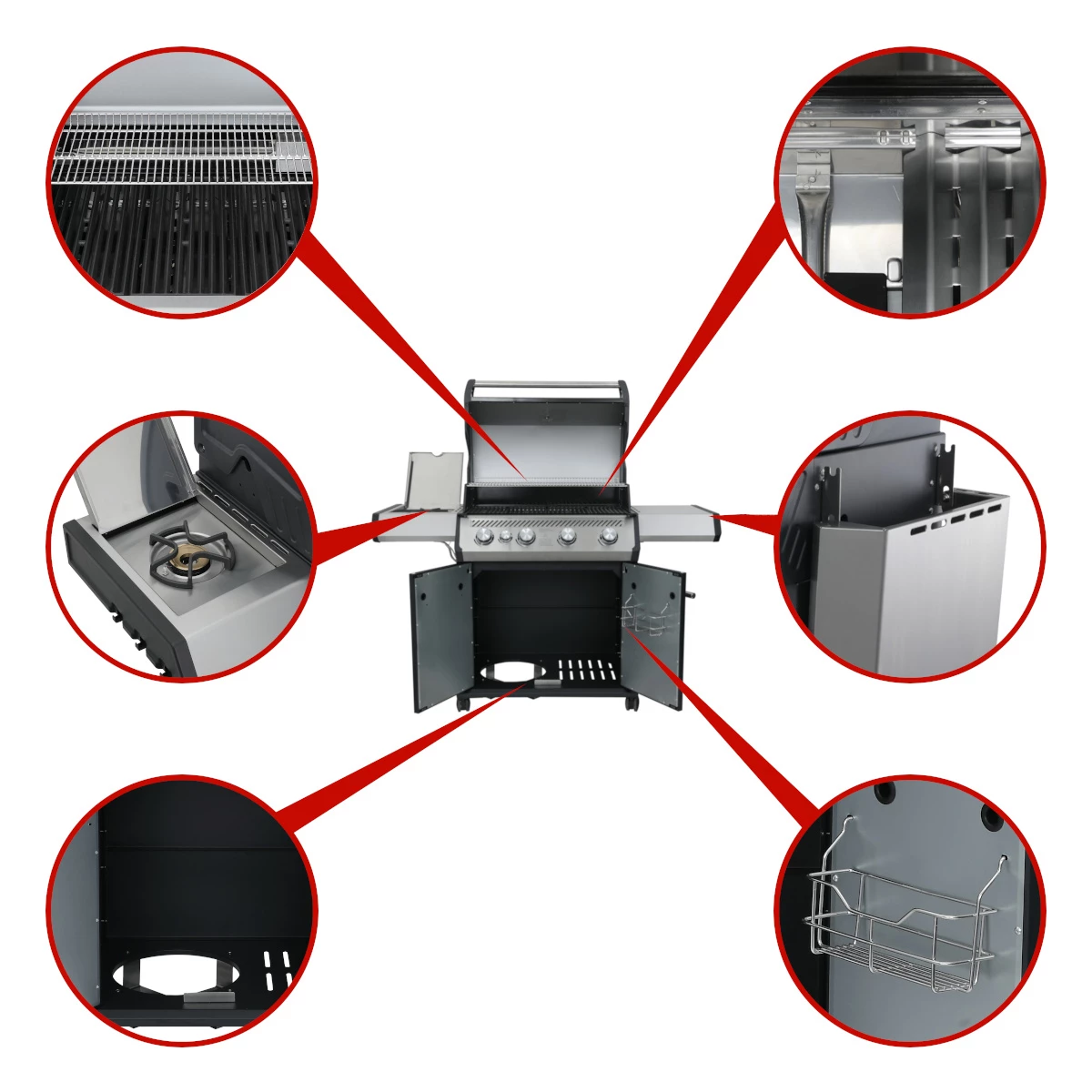 - 4 Edelstahl Hauptbrenner mit Flammenverteilern