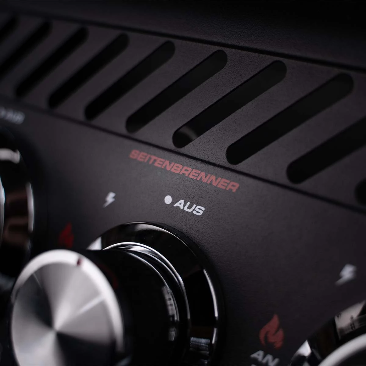 Den Seitenbrenner und Heckbrenner startet Ihr mit elektronischer Unterstützung auch direkt am entsprechenden Regler. Es gibt praktisch keine Fehlzündungen und kein Gas wird verschwendet.
